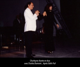 Un soir, Charles DUMONT, spectateur confondu par les qualités vocales de CHARLEYNE viendra lui proposer de chanter en duo avec lui. La jeune femme repartira alors vers de nouveaux horizons, de nouveaux voyages avec ce grand auteur-compositeur et interprète romantique, qui composa notamment de nombreuses chansons pour Edith PIAF dont il était aussi le pianiste.